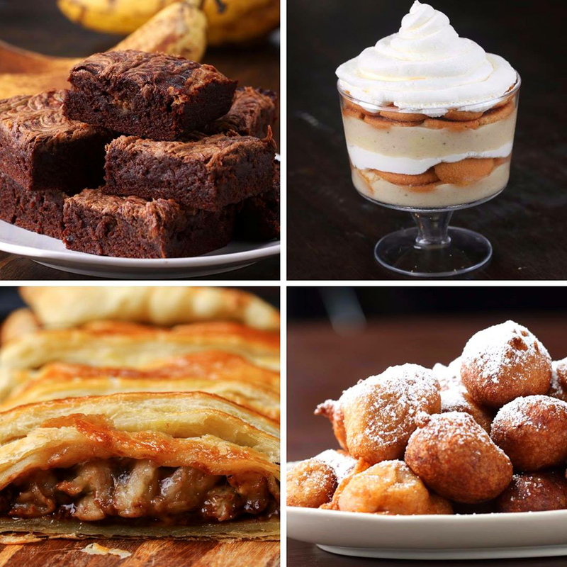 Did you know people throw TONS of ripe bananas away just because they have spots? Waste less food and make these 4 delicious desserts with ripe bananas instead! FULL RECIPES:...